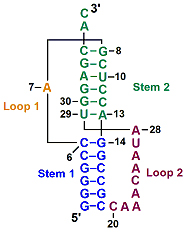 NMR structure of a 30-nucleotide construct containing residues 93-121 and 166. The hairpin has a well-defined structure consisting of a 12-bp helix capped by a pentaloop.