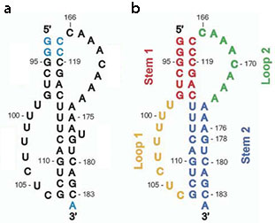 Opening image: RNA pseudoknot from simian retrovirus type-1 (SRV-1).