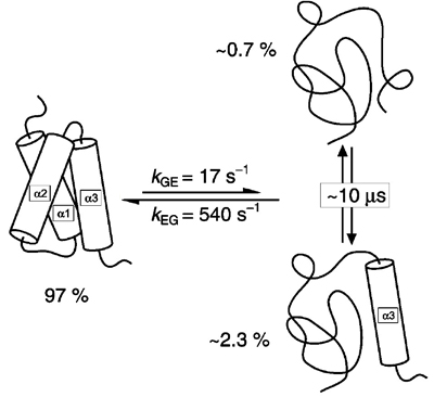 The NMR structure was determined at 27°C. But even at that temperature, KIX is in equilibrium with two unfolded states. See .